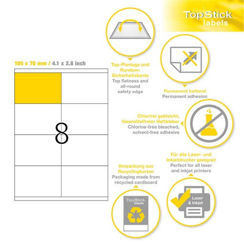- Öntapadó etikettcímkék tartós ragasztással, A4-es lapokon.