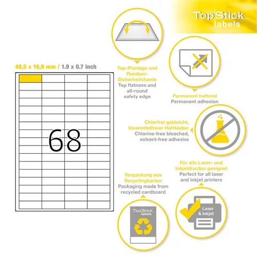 Topstick Etikett címke Topstick 48.5x16.9 mm szegéllyel 100 ív 6800 db/doboz