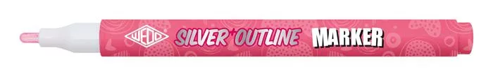 A tollhegy rövid lenyomása után az ezüst szöveget vékony színes körvonal veszi körül, így a dupla vonalú metálfényű markerrel egyszerre két színnel írhat.