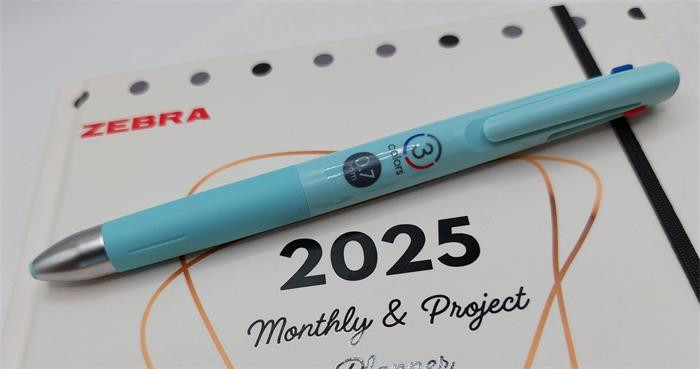 ZEBRA Golyóstoll, 0, 24 mm, nyomógombos, háromszínű, ZEBRA "bLen 3C", kékeszöld test