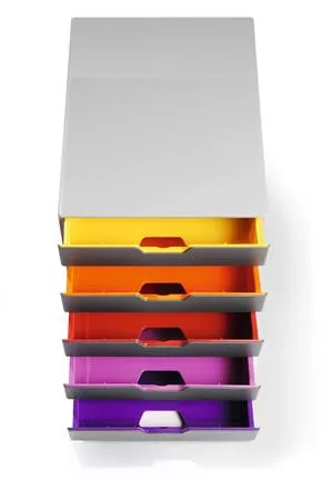 Fiókos irattároló 5 színes fiókkal, ami megkönnyíti a rendszerezést és a tájékozódást.
