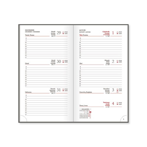 • Terjedelem: 140 oldal – 16 információs oldal, 112 naptároldal, 2027 januári tervező, jegyzetek, telefonregiszter