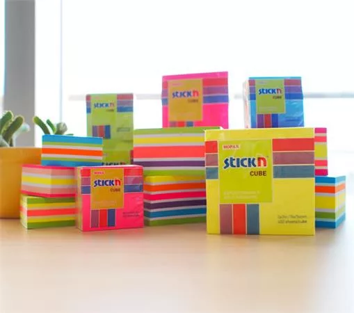 STICK N Öntapadó kockatömb, 76x76mm, 400 lap, STICK N, neon szivárvány